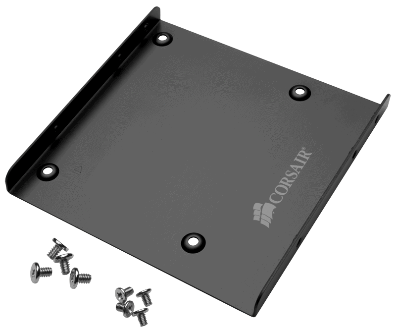 Adaptorul Corsair SSD Mounting Bracket permite instalarea unităților SSD de 2.5" în sistemele PC echipate cu bay-uri standard de 3.5". Construit din aluminiu eloxat negru, acest bracket asigură o fixare stabilă și lasă spațiu pentru conectarea cablurilor SATA fără a tensiona conectorii.